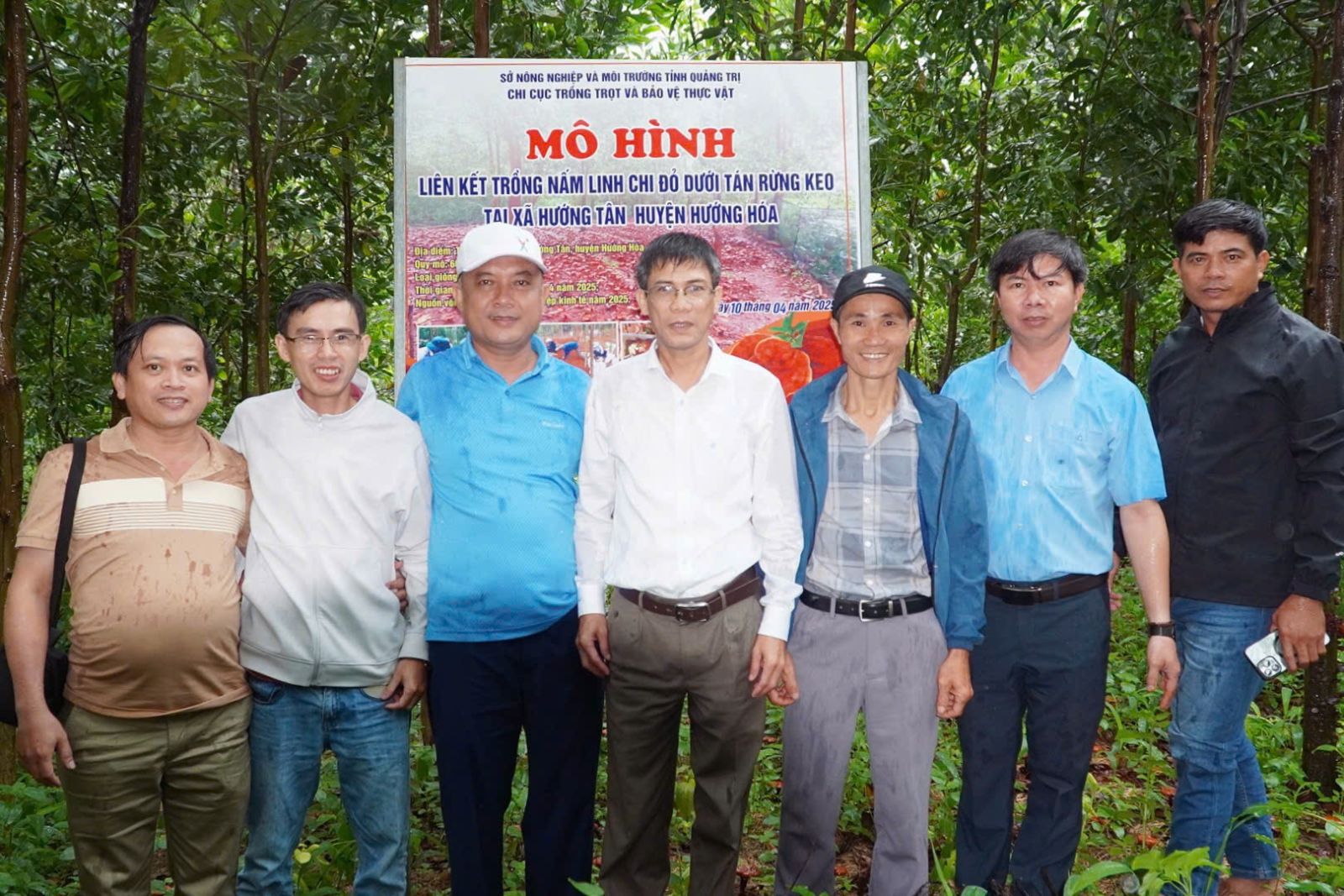 Hành trình đã đưa Đoàn đến hai điểm trọng yếu: mô hình hộ gia đình của ông Trần Văn Linh tại thôn Huỳnh Thượng, xã Vĩnh Thủy, tỉnh Quảng Trị. và khu vực sản xuất quy mô lớn tại HTX Nông nghiệp Thương mại Hiệp Phát cùng HTX Chân Mây ở xã Khe Sanh. Các mô hình này đã chứng minh tính ưu việt khi tận dụng môi trường dưới tán rừng keo với độ che phủ lý tưởng trên 80%. Đây là điều kiện tiên quyết giúp nấm linh chi đỏ sinh trưởng tối ưu.