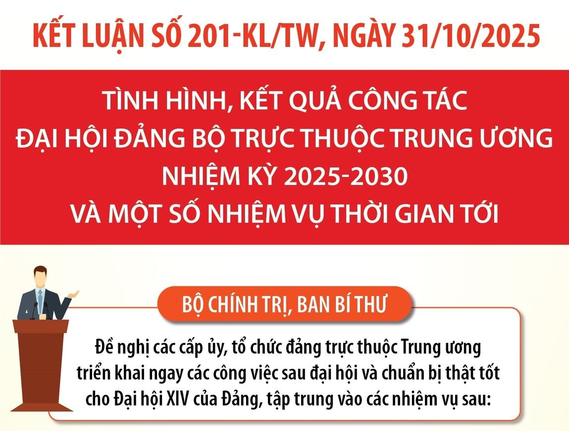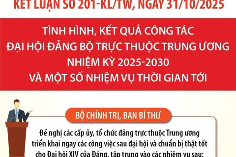 Kết luận số 201-KL/TW về tình hình, kết quả công tác Đại hội Đảng bộ trực thuộc Trung ương nhiệm kỳ 2025-2030 và một số nhiệm vụ thời gian tới