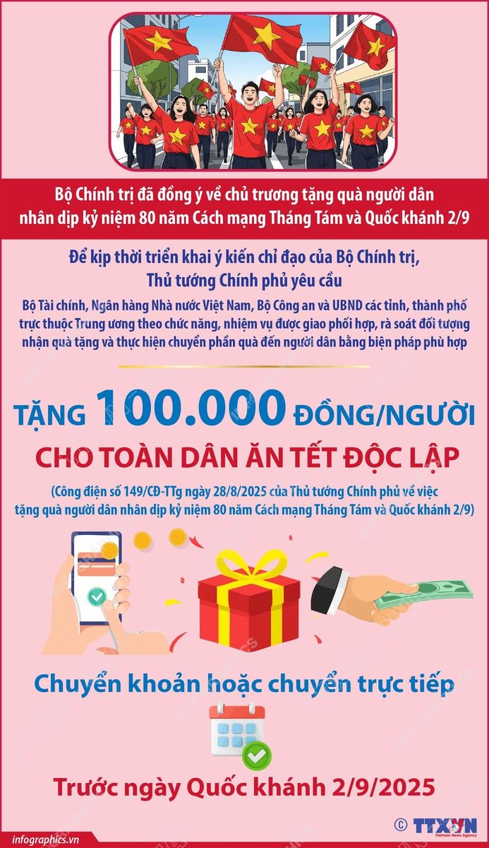 Tặng 100.000 đồng/người cho toàn dân ăn Tết Độc lập