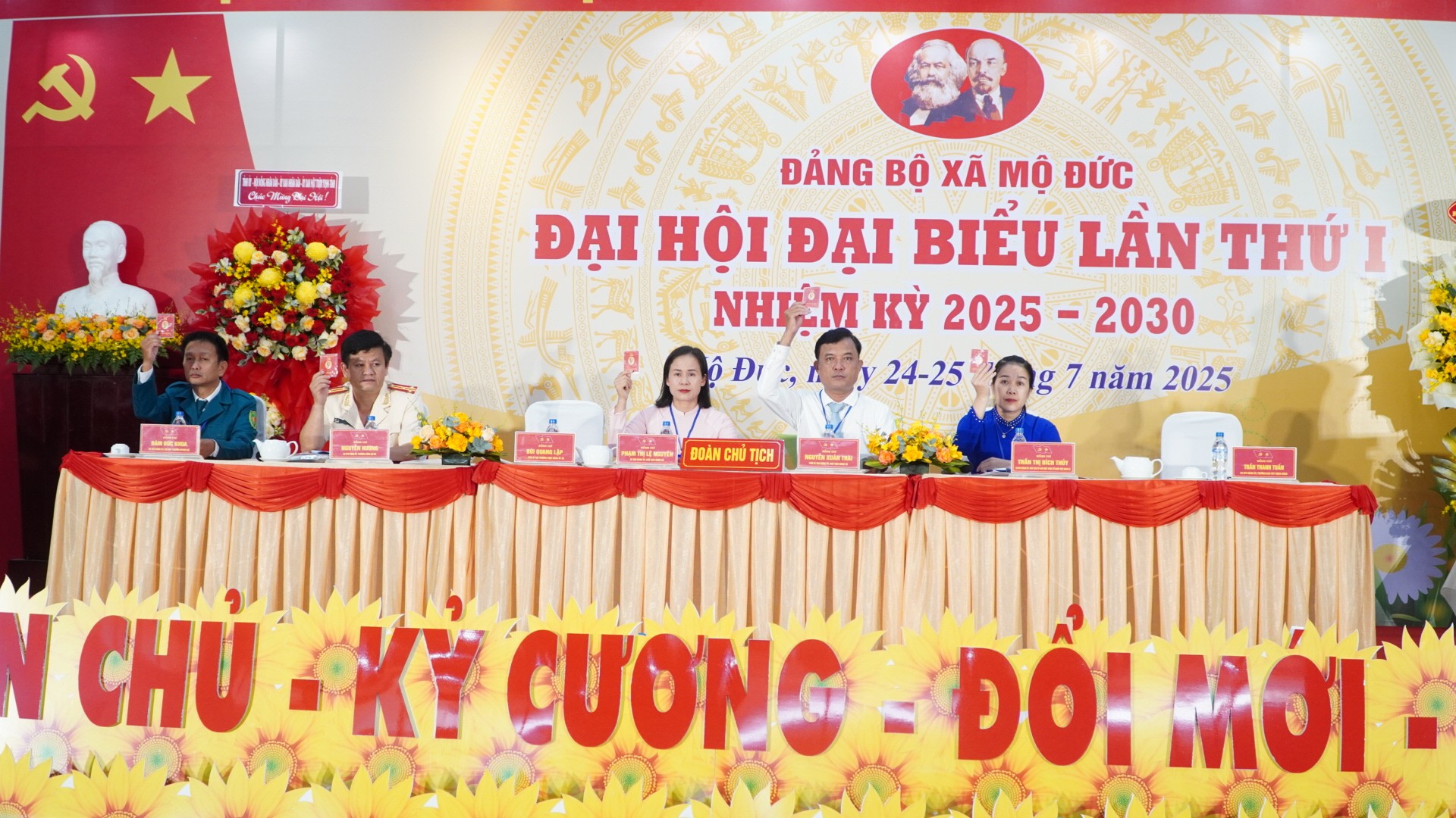 Với tinh thần làm việc trách nhiệm cao, Phiên họp thứ nhất Đại hội đại biểu Đảng bộ xã Mộ Đức lần thứ I, nhiệm kỳ 2025 - 2030 đã thành công tốt đẹp.