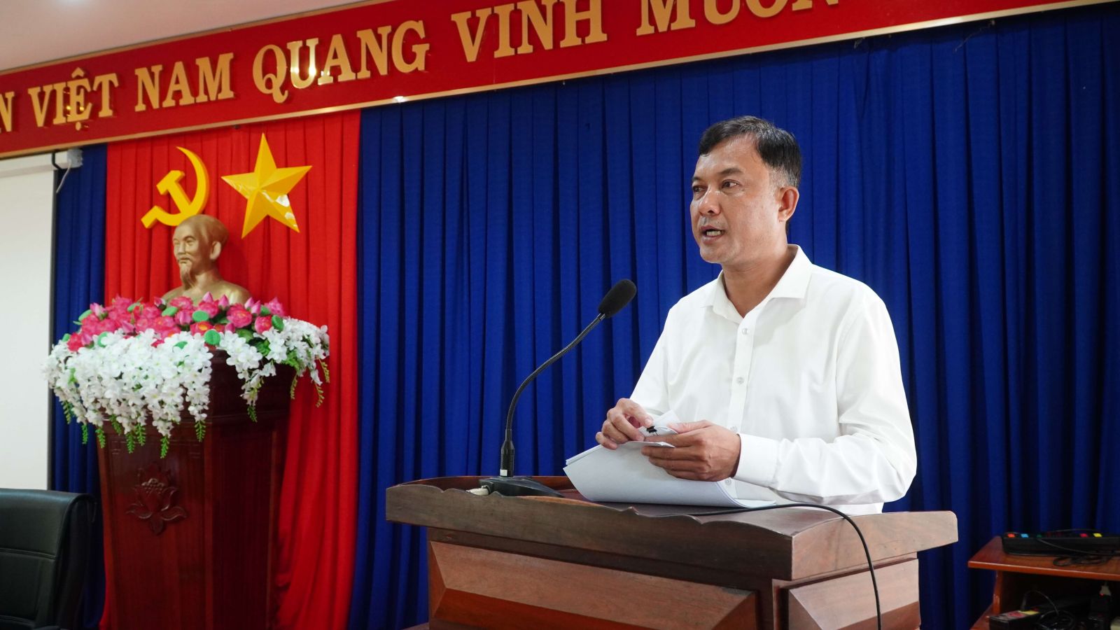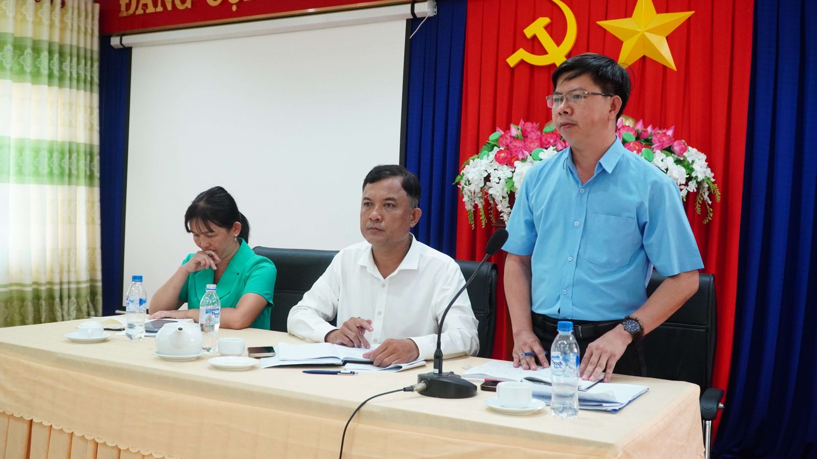 Ảnh - đồng chí Nguyễn Xuân Thái - Chủ tịch UBND xã phát biểu tại cuộc họp.