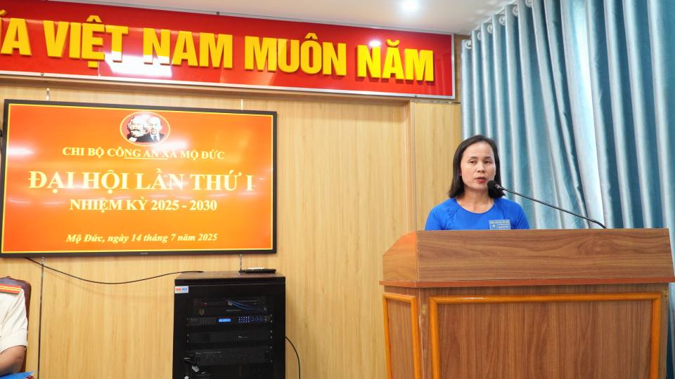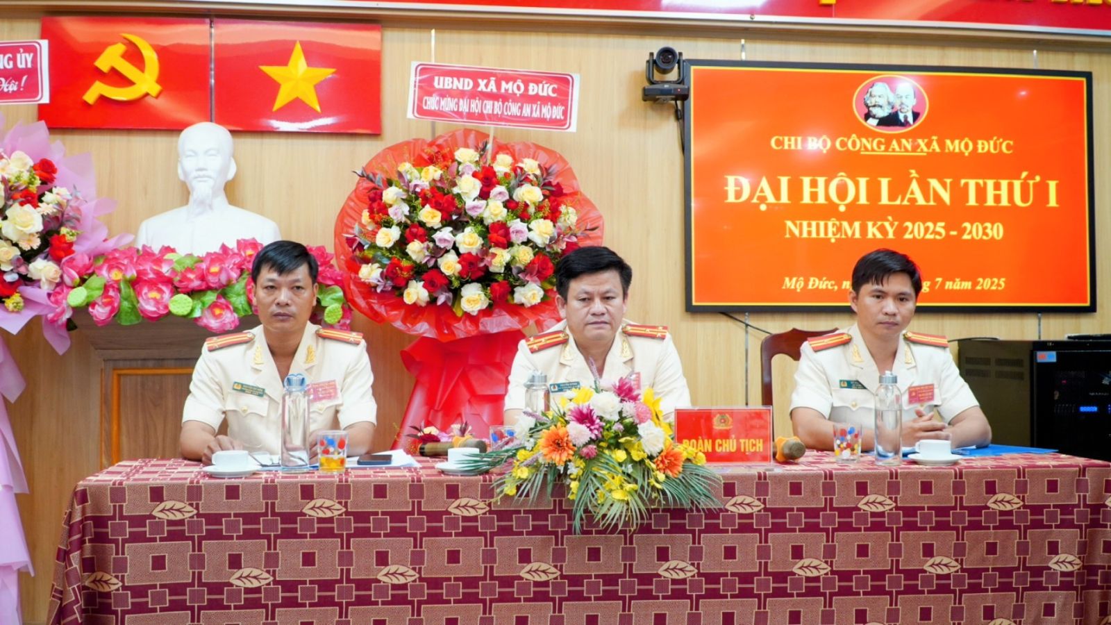 Ngày 14/7/2025, Chi bộ Công an xã Mộ Đức long trọng tổ chức Đại hội lần thứ I, nhiệm kỳ 2025 - 2030. Tham dự Đại hội có đồng chí Phạm Thị Lệ Nguyên –Bí thư Đảng ủy, Chủ tịch HĐND xã Mộ Đức. Tham dự đại hội có 33 đảng viên của chi bộ.
