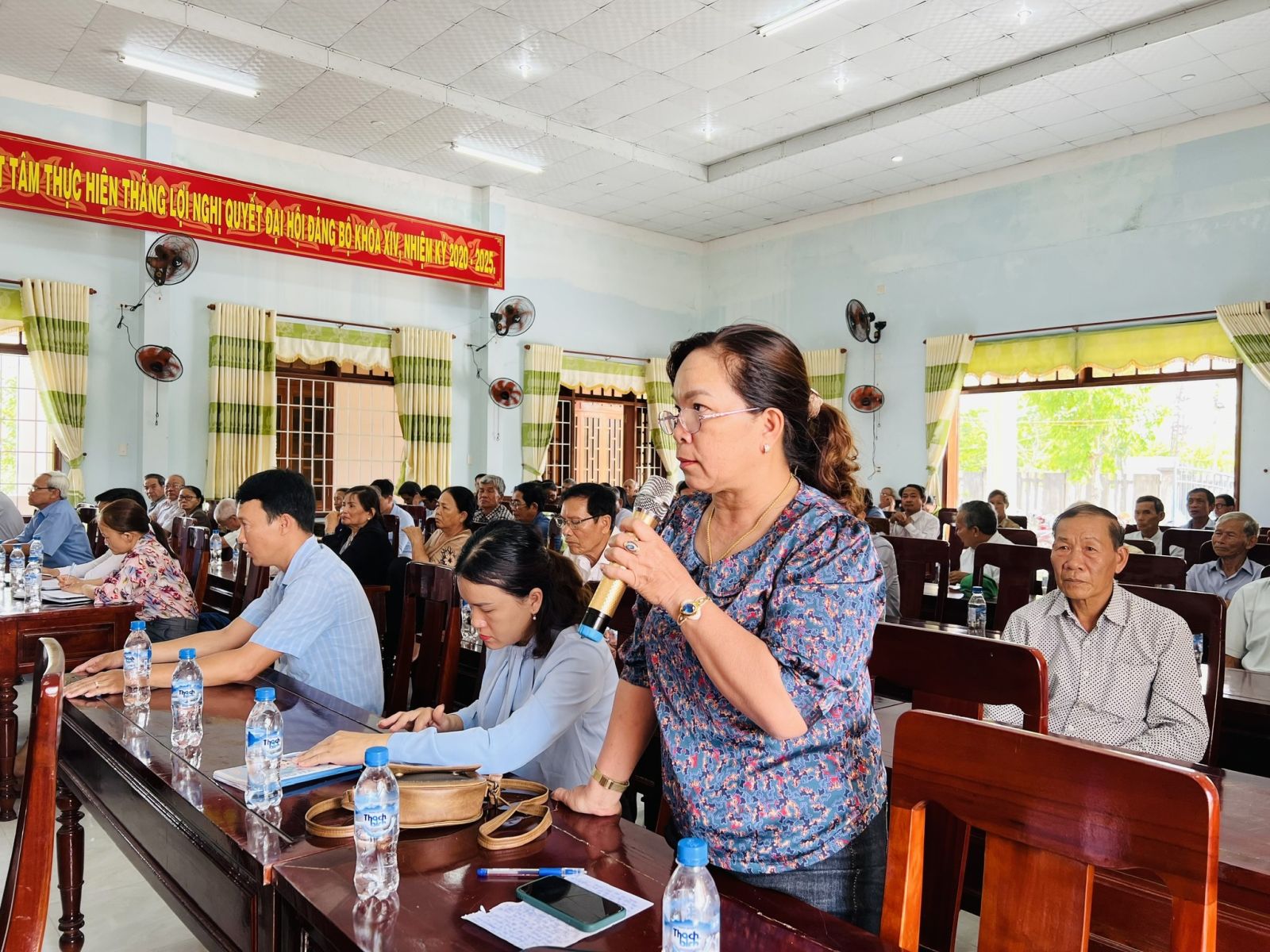 Hình - Bà con cử tri phát biểu ý kiến, kiến nghị tại buổi tiếp xúc.