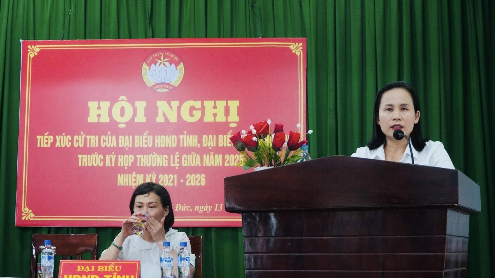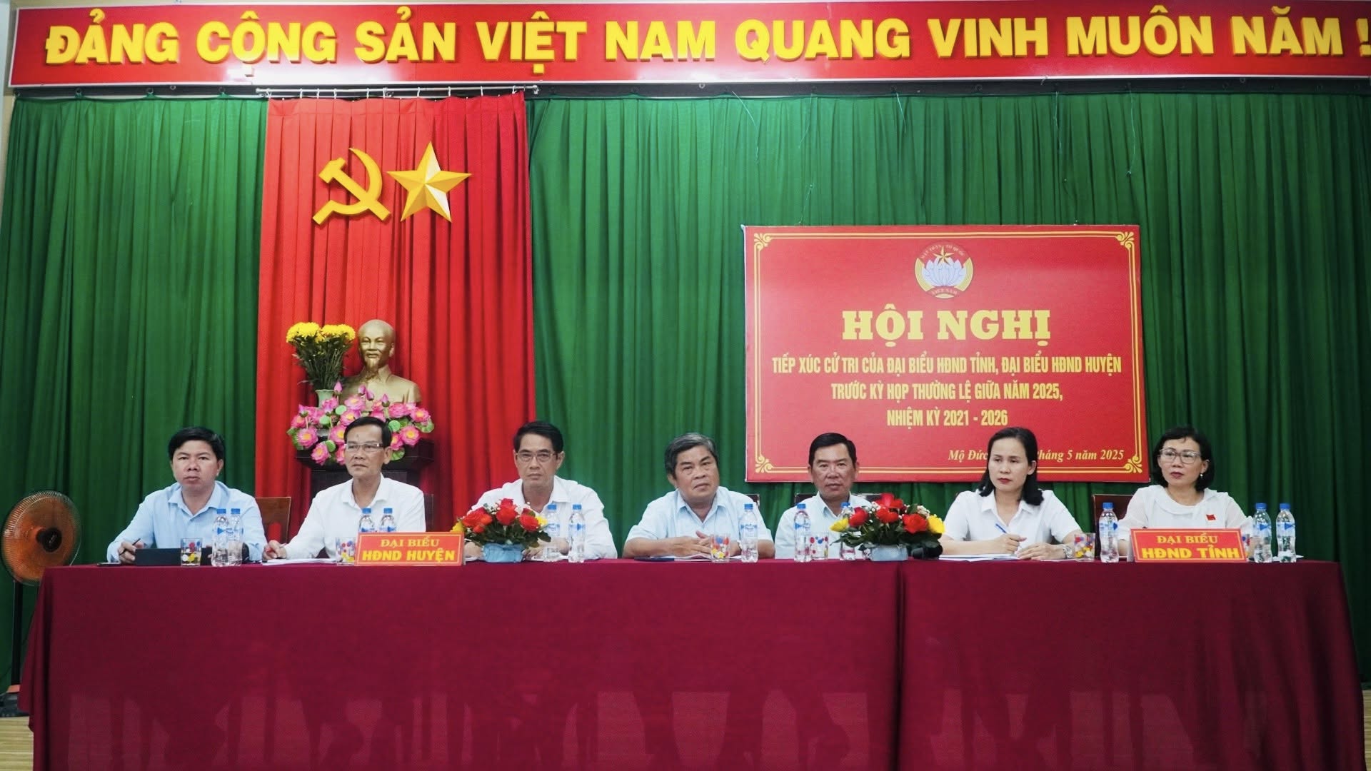 Chiều ngày 13/5/2025, tại thị trấn Mộ Đức, tổ đại biểu HĐND tỉnh, huyện gồm bà Trần Thị Kiều Oanh - Trưởng phòng Thư ký - Biên tập chương trình, Đài Phát thanh và Truyền hình tỉnh Quảng Ngãi; ông Lê Thái Huyên - UVBTV, Chủ tịch UBMTTQVN huyện; ông Ngô Văn Thanh - HUV - Phó Chủ tịch UBND huyện đã có buổi tiếp xúc cử tri xã Đức Tân, Đức Hoà, Đức Phú và thị trấn Mộ Đức.