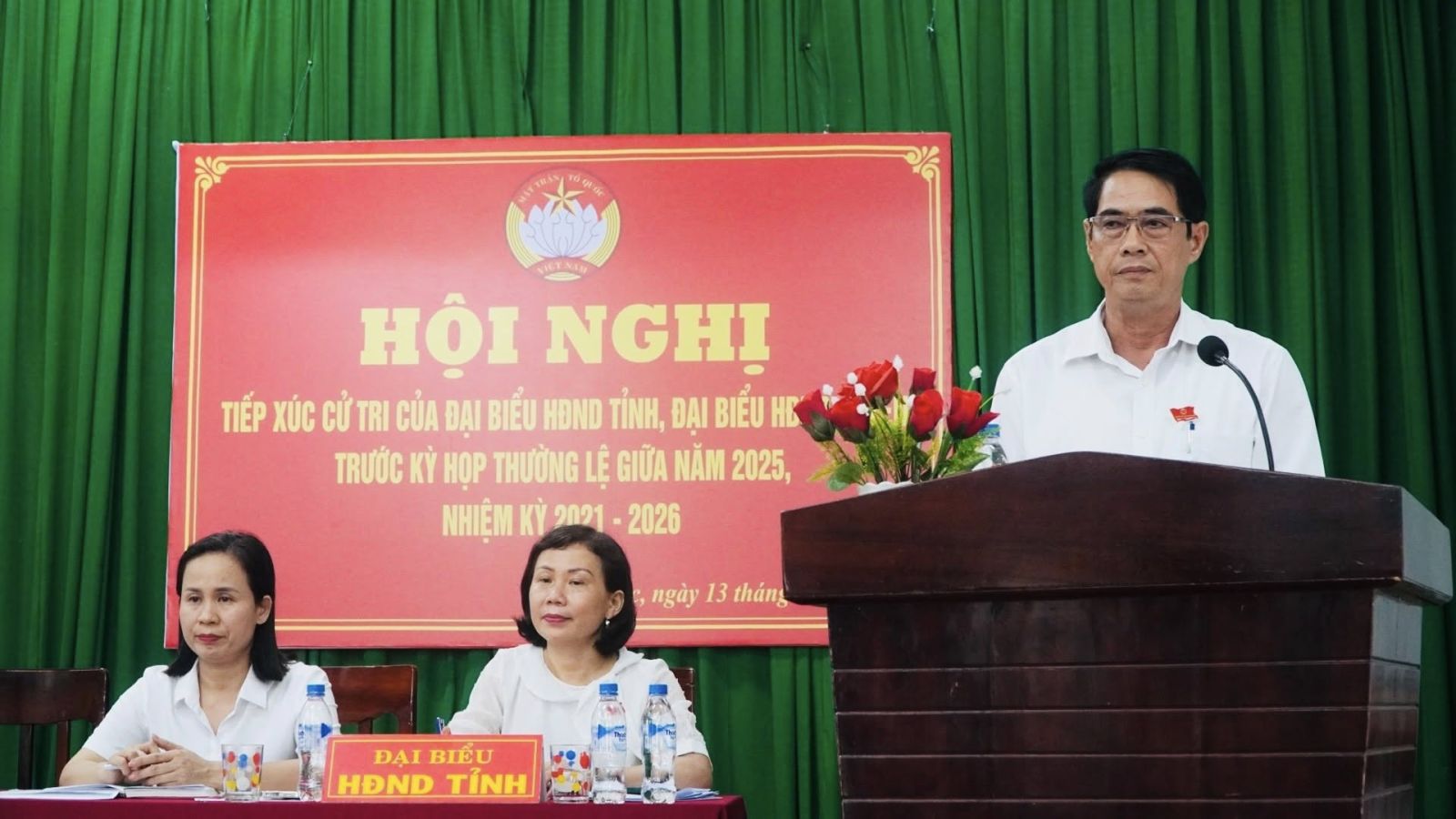 Tại buổi tiếp xúc cử tri, Đại biểu HĐND 2 cấp tỉnh và huyện đã báo cáo tóm tắt tình hình KTXH-QPAN của tỉnh, huyện trong 4 tháng đầu năm 2025; tình hình hoạt động của HĐND tỉnh, huyện trong 4 tháng qua và kế hoạch trong thời gian đến, dự kiến chương trình kỳ họp thường lệ giữa năm 2025; đồng thời báo cáo kết quả giải quyết, trả lời ý kiến, kiến nghị của cử tri trước kỳ họp giữa năm 2025.