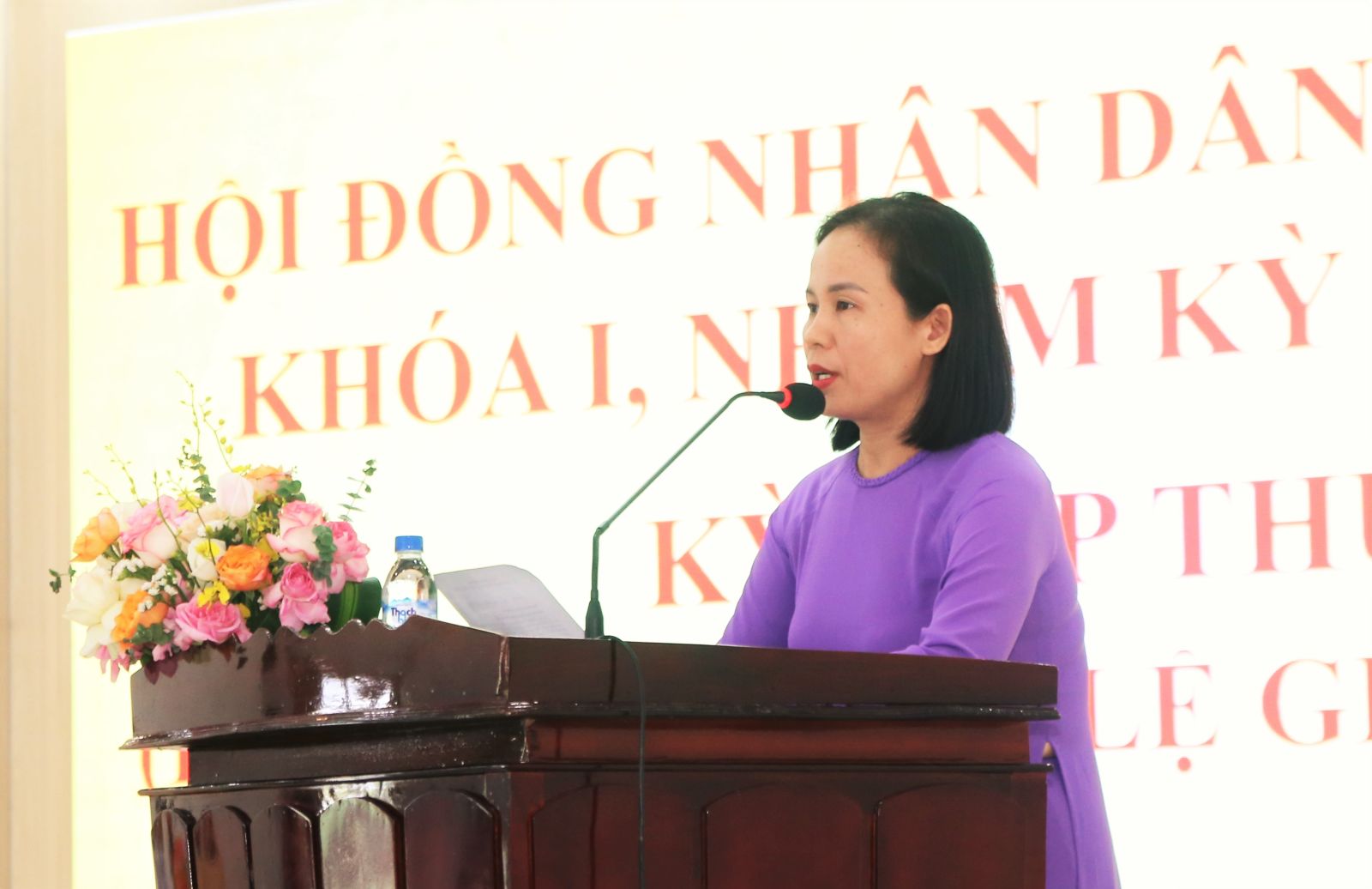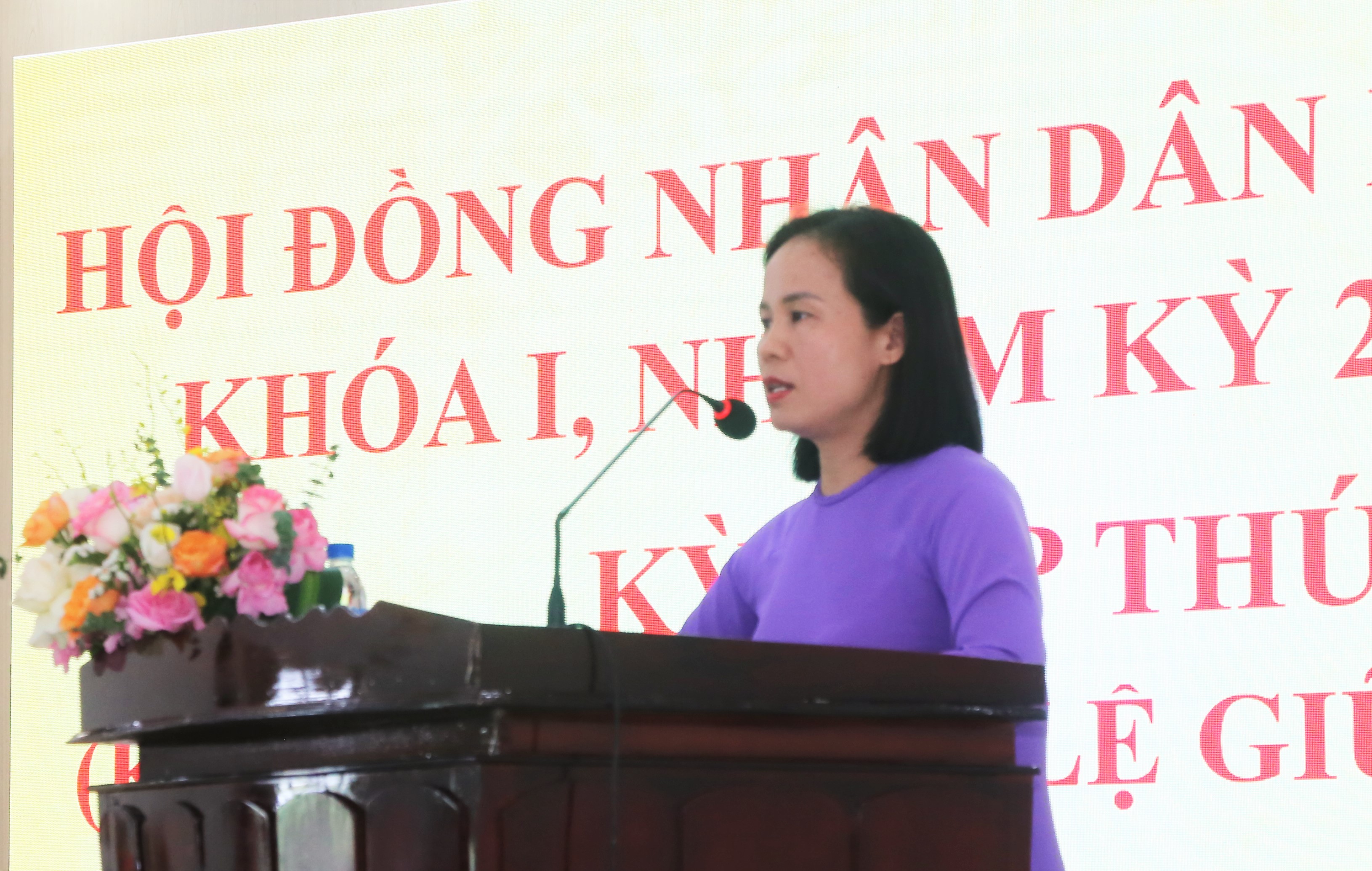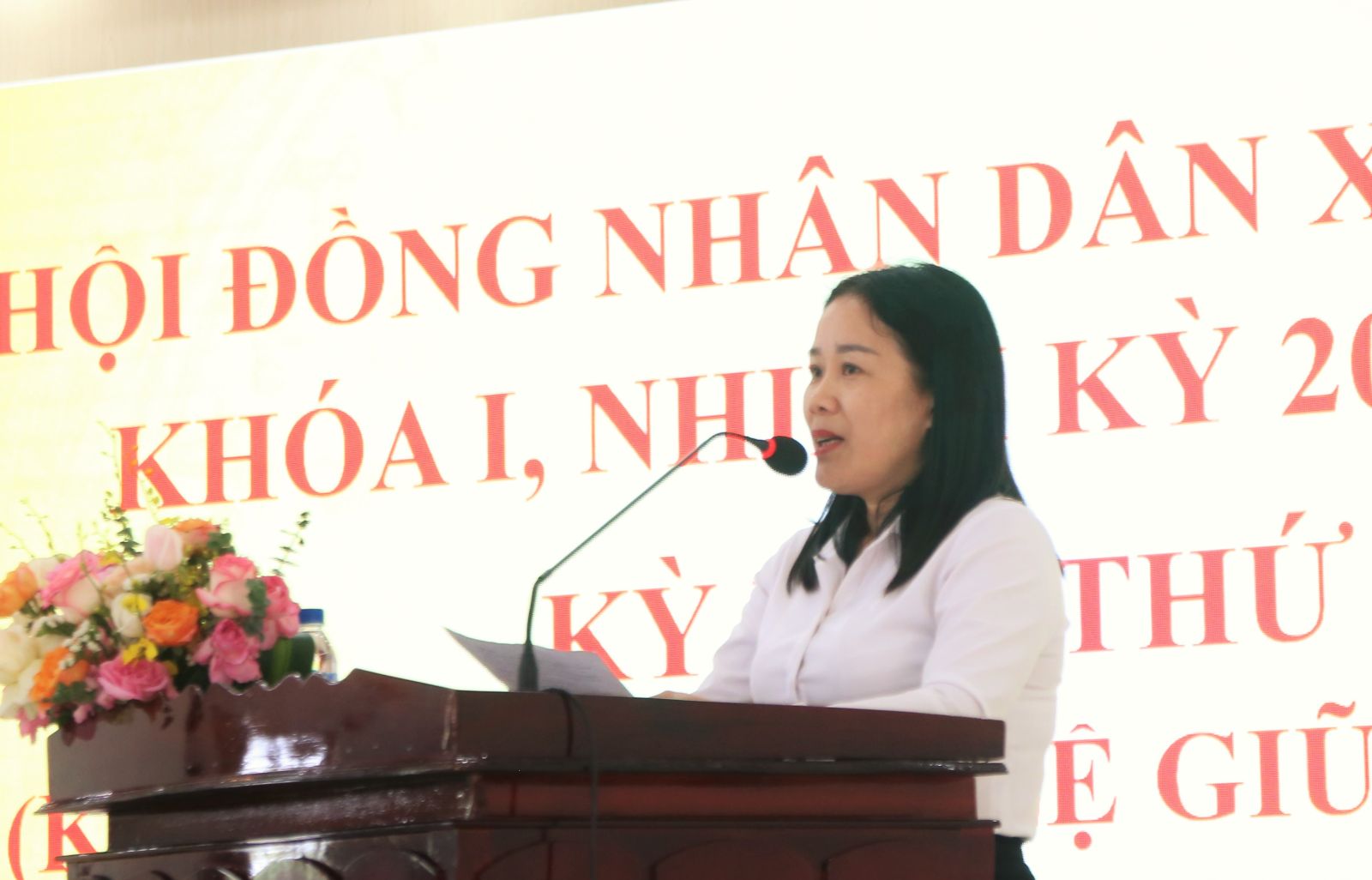Ảnh - Đồng chí Phạm Thị Lệ Nguyên - Bí thư Đảng ủy-Chủ tịch HĐND xã phát biểu tại kỳ họp.