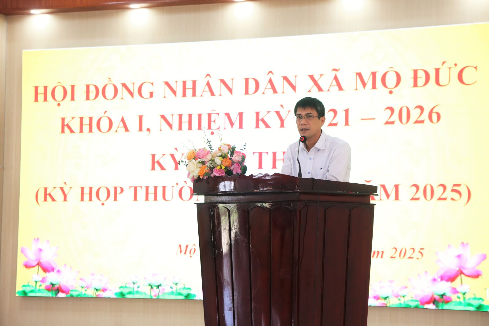 Phát biểu tại kỳ họp, đồng chí Bùi Quang Lập – Phó Bí thư thường trực Đảng ủy ghi nhận và đánh giá cao những kết quả đạt được của xã Mộ Đức trong thời gian qua. Đồng chí khẳng định kỳ họp lần này có ý nghĩa cực kỳ quan trọng, không chỉ quyết định các vấn đề về phát triển kinh tế-xã hội mà còn tạo động lực cho chặng đường phát triển mới của xã.