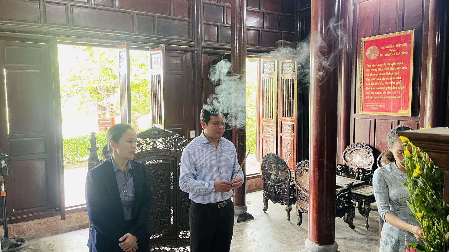 Trong khuôn khổ chuyến công tác, ngày 24/7/2025, đồng chí Nguyễn Đức Tuy – Phó Bí thư Tỉnh ủy, Chủ tịch HĐND tỉnh Quảng Ngãi đã đến dâng hương, dâng hoa tưởng niệm tại Khu lưu niệm cố Thủ tướng Phạm Văn Đồng, người con ưu tú của quê hương “núi Ấn - sông Trà”.