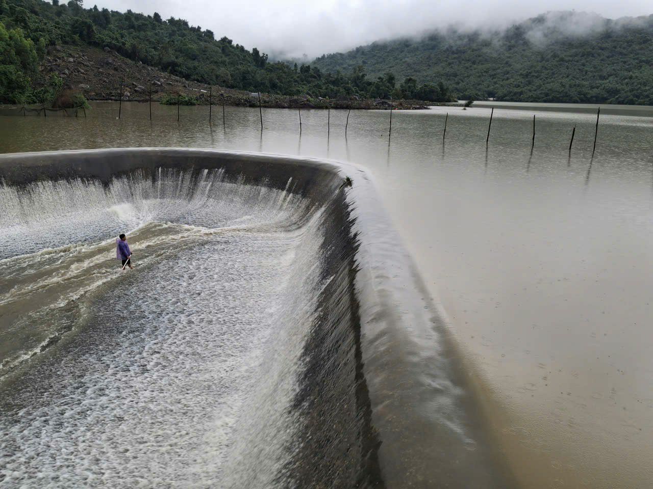 Tại hiện trường, Phó Chủ tịch UBND xã Phạm Ngọc Tư đặc biệt lưu ý tình trạng nguy hiểm tại các khu vực hồ tràn xả lũ, nơi nước chảy xiết và xuất hiện xoáy nước mạnh. Mặc dù vậy, vẫn có một số người dân chủ quan, tranh thủ đánh bắt cá tại khu vực bờ tràn.