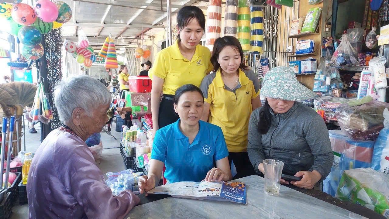 Tại điểm cầu huyện Mộ Đức, ngay sau khi dự lễ phát động trực tuyến của BHXH tỉnh, BHXH huyện Mộ Đức phối hợp với các tổ chức Dịch vụ thu (DVT) BHXH, BHYT ra quân hưởng ứng. Cán bộ viên chức của 02 ngành BHXH và Bưu điện huyện chia thành các nhóm nhỏ trực tiếp đến các khu đông dân cư, trung tâm thương mại, chợ,.. vận động người dân tích cực tham gia BHXH tự nguyện, BHYT hộ gia đình, góp phần bảo đảm an sinh, ổn định cuộc sống cho người dân trên địa bàn.