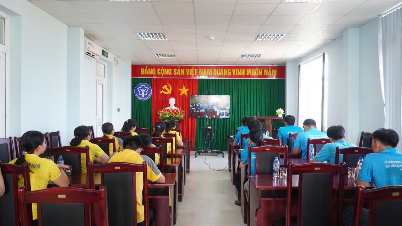 Hình - Quang cảnh lễ phát động trực tuyến của BHXH tỉnh tại điểm cầu huyện Mộ Đức.