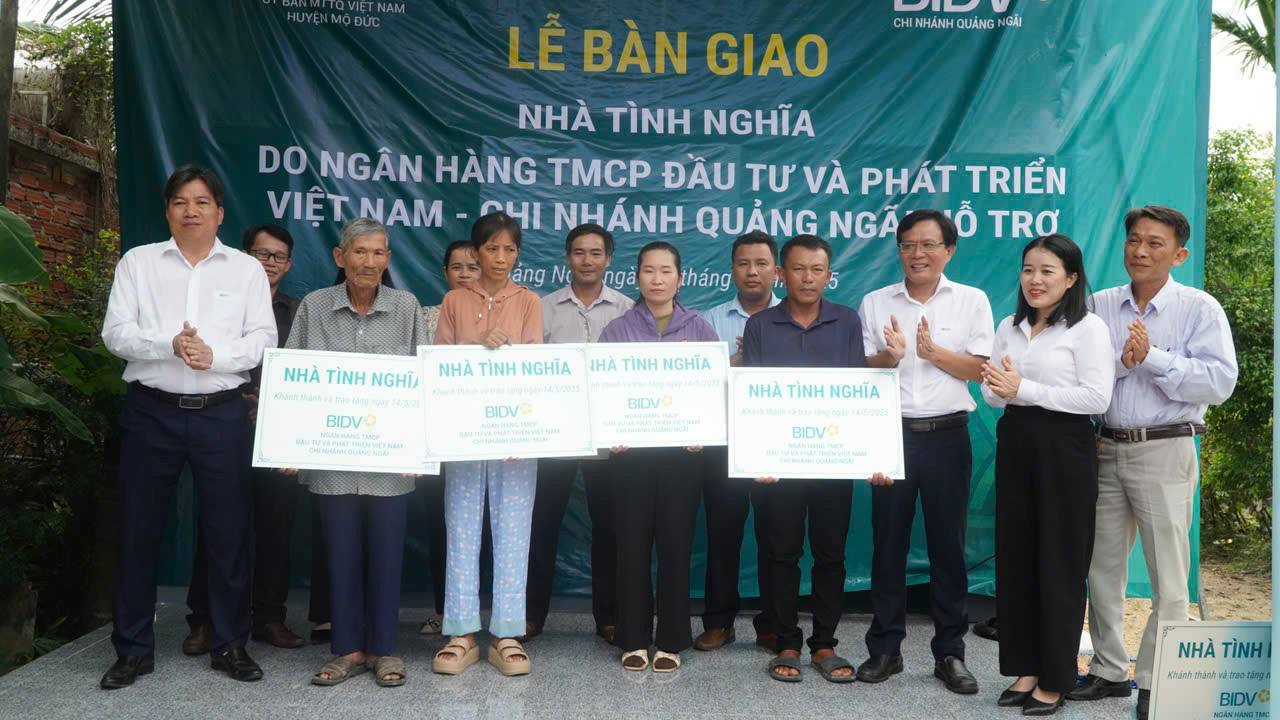 Hình - Ngân hàng TMCP Đầu tư và Phát triển Việt Nam - Chi nhánh Quảng Ngãi (BIDV Quảng Ngãi) tổ chức lễ bàn giao nhà tình nghĩa cho 5 gia đình có hoàn cảnh khó khăn trên địa bàn huyện Mộ Đức.