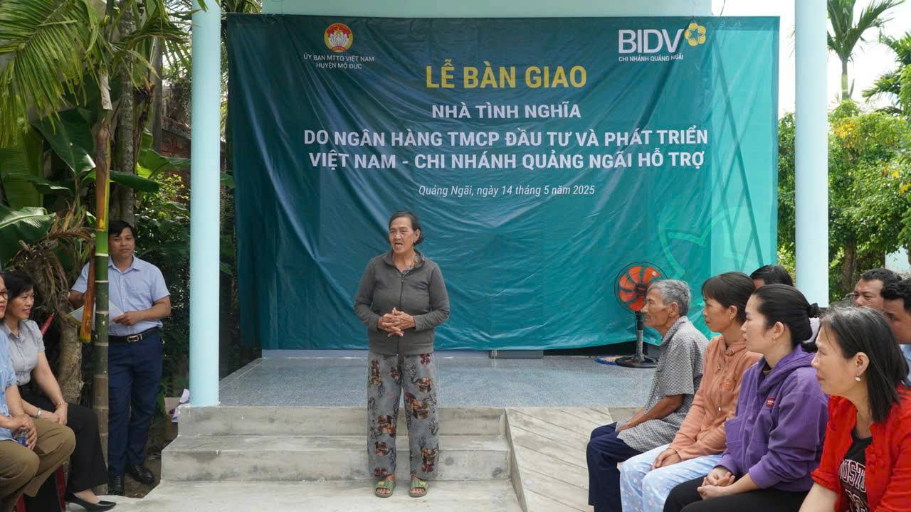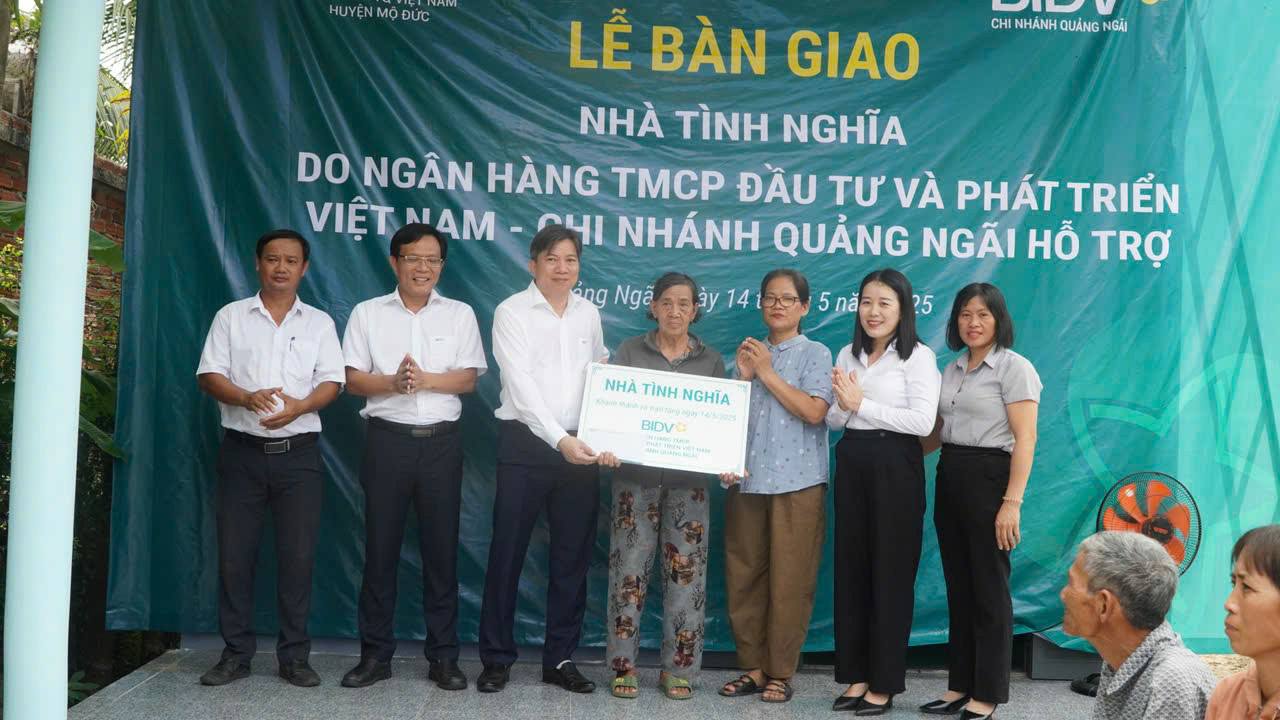 Chiều ngày 14/5/2025, tại xã Đức Thạnh, Ngân hàng TMCP Đầu tư và Phát triển Việt Nam - Chi nhánh Quảng Ngãi (BIDV Quảng Ngãi) phối hợp cùng Ủy ban MTTQ Việt Nam huyện Mộ Đức tổ chức lễ bàn giao nhà tình nghĩa cho 5 gia đình có hoàn cảnh khó khăn trên địa bàn huyện Mộ Đức