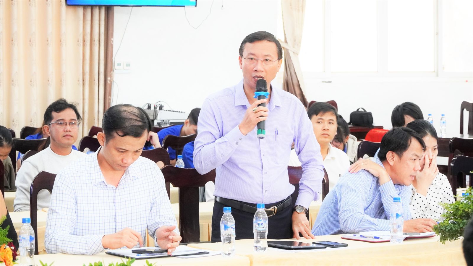 Ảnh - Đại diện các ngành, đơn vị thông tin, trả lời các nội dung liên quan tại buổi đối thoại.