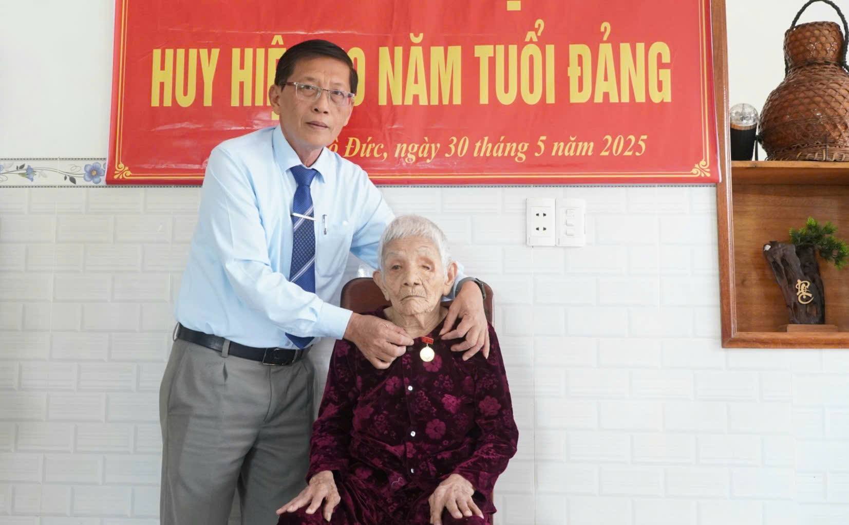 Hình - Trao Huy hiệu 70 năm tuổi Đảng cho Dảng viên Ngô Thị Vê