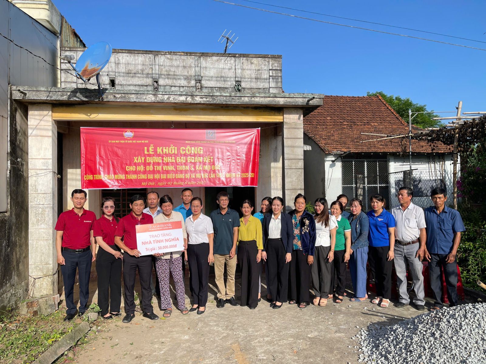 Sáng ngày 02/8/2025, UBMTTQVN xã Mộ Đức phối hợp với Ngân hàng Nông nghiệp và phát triển nông thôn chi nhánh Mộ Đức tổ chức lễ khởi công xây dựng nhà Đại đoàn kết cho hộ bà Đỗ Thị Vinh- thôn 3, xã Mộ Đức. Tham dự buổi lễ, có đồng chí Phạm Thị Lệ Nguyên- Bí thư Đảng ủy, Chủ tịch HĐND xã, đồng chí Bùi Quang Lập – Phó Bí thư thường trực Đảng ủy; đồng chí Trần Thị Bích Thủy – UVBTV, Chủ tịch UBMTTQVN xã; tham gia buổi lễ còn có lãnh đạo các Hội đoàn thể chính trị xã hội xã, các đồng chí Bí thư Chi bộ thôn, Ban công tác Mặt trận thôn và đại diện gia đình.