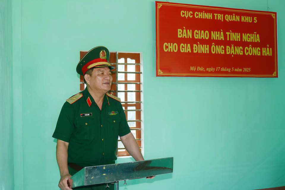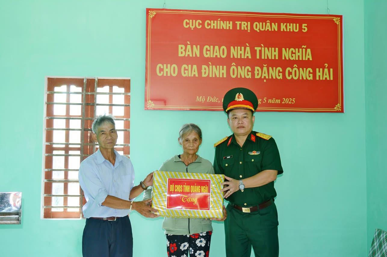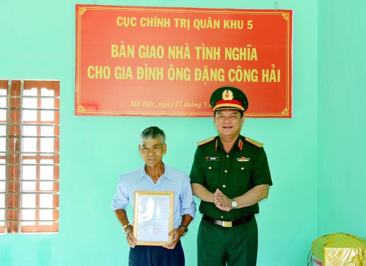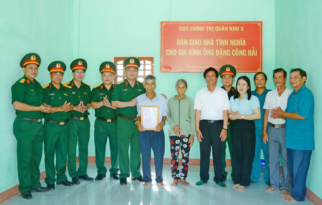 Sáng ngày 17/5/2025, Cục Chính trị Quân khu 5 tổ chức bàn giao nhà tình nghĩa cho gia đình ông Đặng Công Hải ở thôn Phước Sơn, xã Đức Hiệp, huyện Mộ Đức, tỉnh Quảng Ngãi. Đến dự và bàn giao nhà có Thiếu tướng Võ Văn Hưng, Chủ nhiệm Chính trị Quân khu; Thượng tá Lê Hữu Duy, Chủ nhiệm Chính trị Bộ CHQS tỉnh.