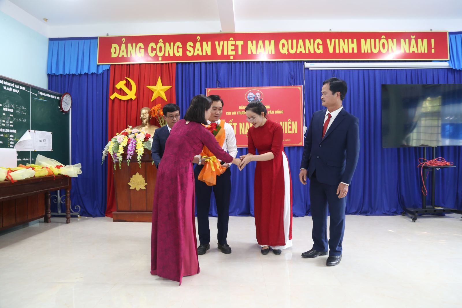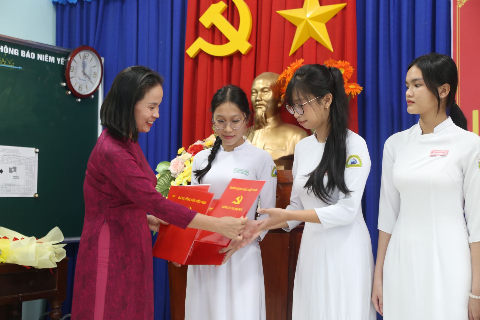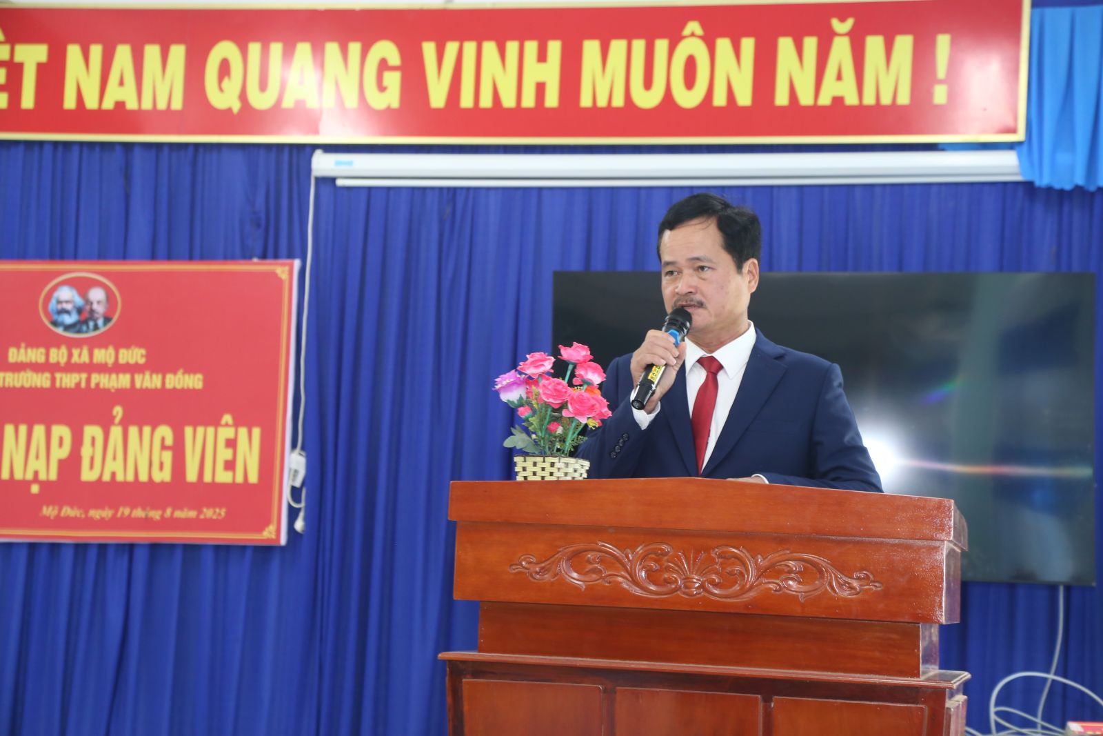 Tại buổi lễ, thay mặt Thường trực Đảng uỷ xã Mộ Đức, Chi bộ nhà trường đã trao quyết định kết nạp vào Đảng Cộng sản Việt Nam cho 10 giáo viên, nhân viên và học sinh ưu tú của nhà trường, gồm 02 giáo viên, nhân viên Bùi Phan Thiên Thưởng; Nguyễn Thị Thanh Lam; và 08 em học sinh: Huỳnh Dĩnh Khang; Phạm Triệu Chiêu Quân; Nguyễn Thuỳ Linh; Bùi Lâm Ngọc Linh; Phạm Thanh Kiệt; Phạm Thị Ái; Trần Thị Kim Ngân; Bùi Thị Phương Lan. Đây là những giáo viên, nhân viên, học sinh ưu tú, xuất sắc trong học tập và các hoạt động phong trào của nhà trường.