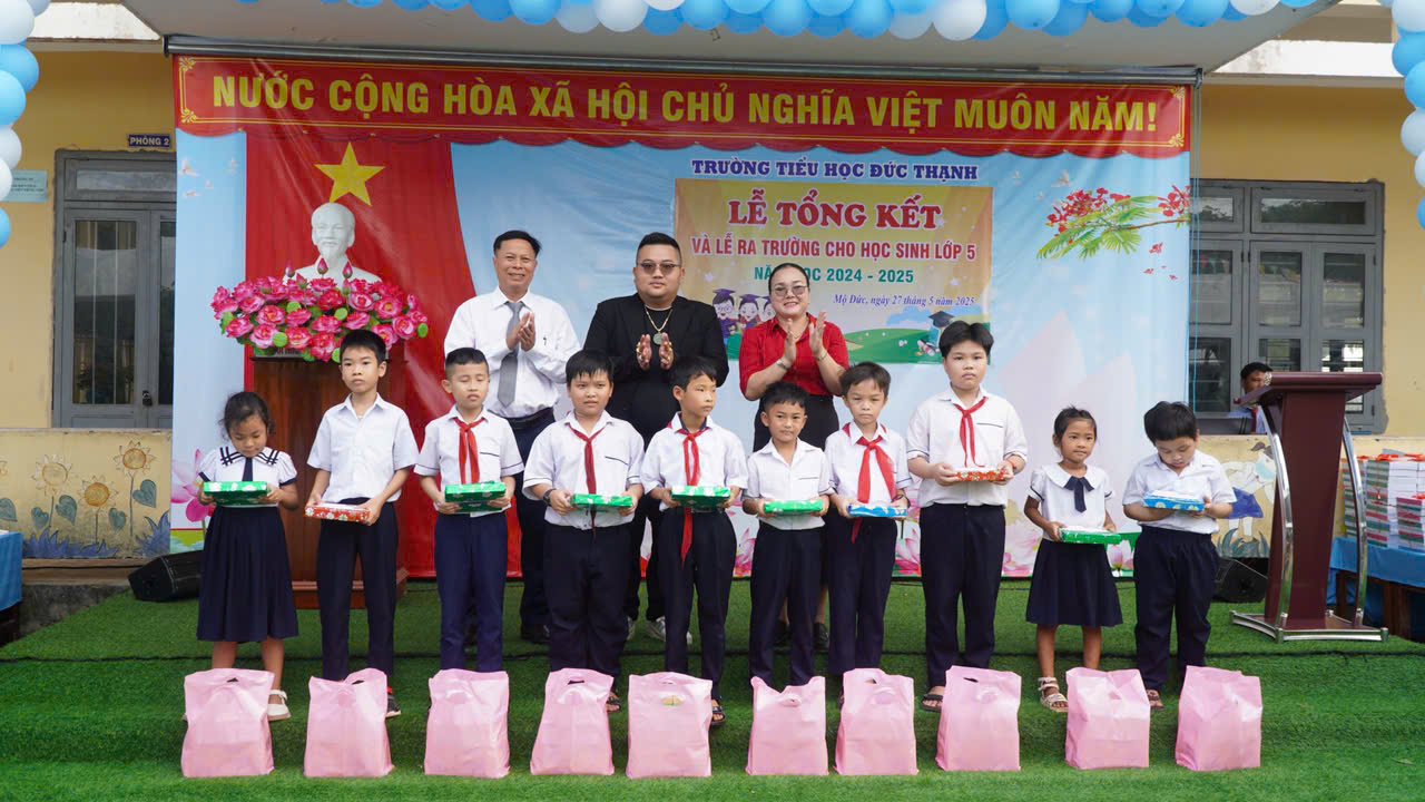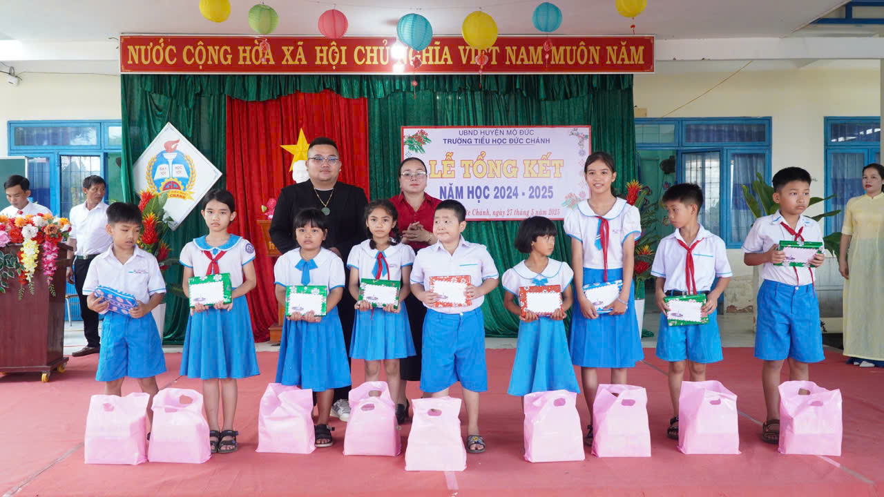 Dịp này, đoàn đã trao tặng 31 suất quà cho học sinh ở 3 trường Tiểu học Đức Thạnh (10 suất), tiểu học Đức Chánh (10 suất) và tiểu học Đức Minh (11 suất). Mỗi phần trị giá 500 ngàn đồng gồm gồm sữa, bánh, vở và 300 ngàn đồng tiền mặt.