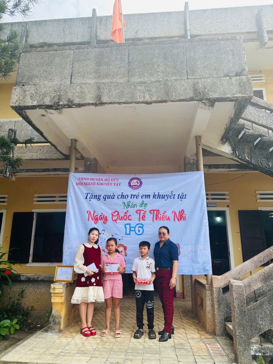 Nhân dịp Quốc tế thiếu nhi 1/6, sáng ngày 30/5, Trung tâm Ngoại ngữ ISUN phối hợp với Hội người khuyết tật huyện Mộ Đức tổ chức trao tặng quà cho trẻ em khuyết tật có hoàn cảnh khó khăn trên địa bàn huyện.