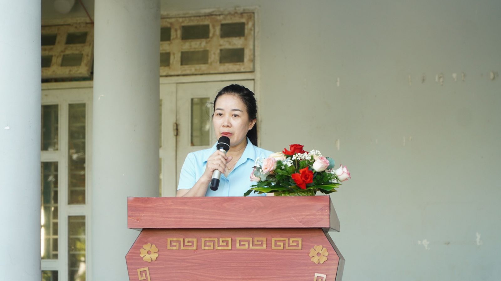 Ảnh - đồng chí Trần Thị Bích Thủy, Chủ tịch UBMTTQVN xã, phát biểu tại buổi lễ.