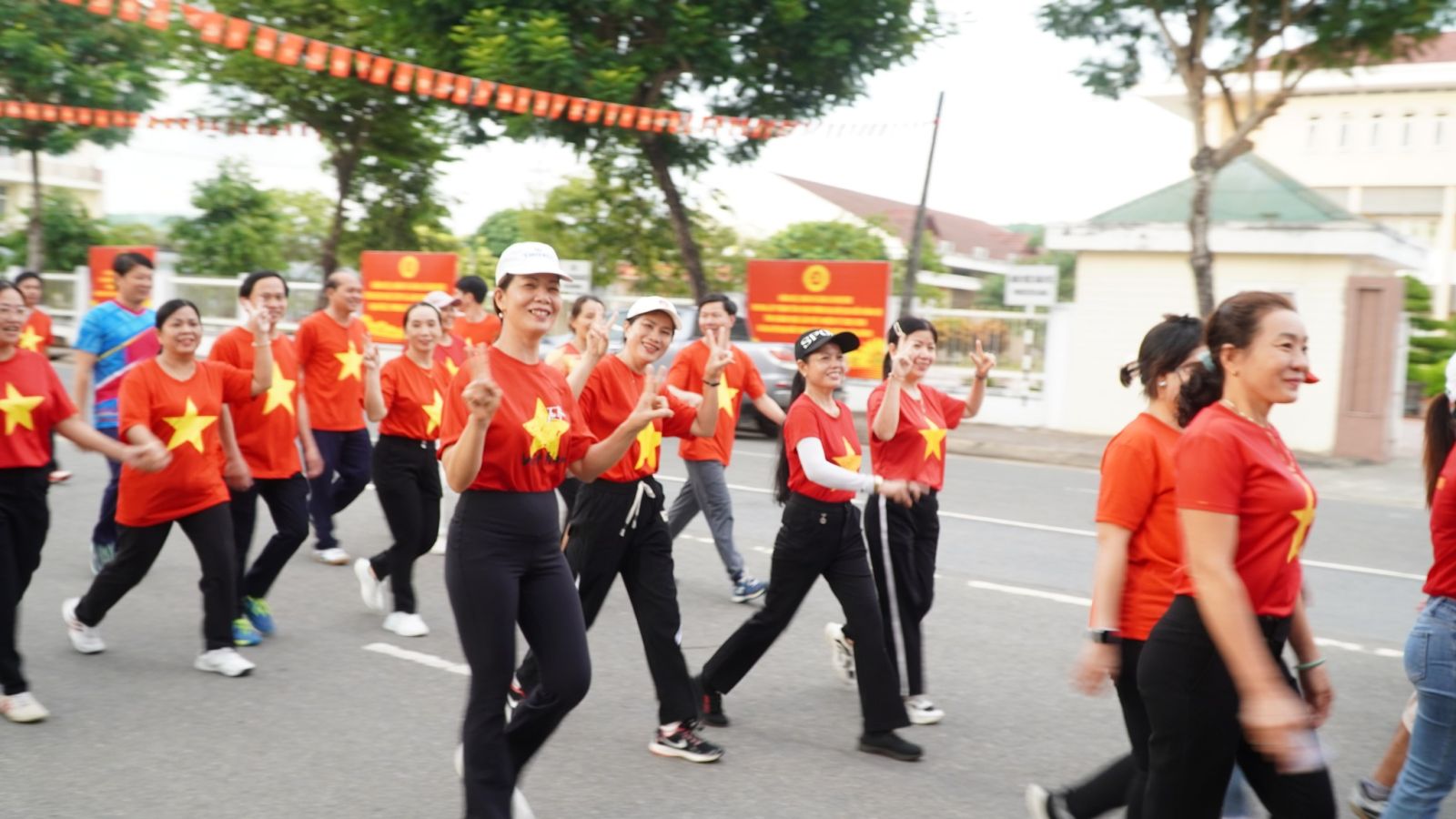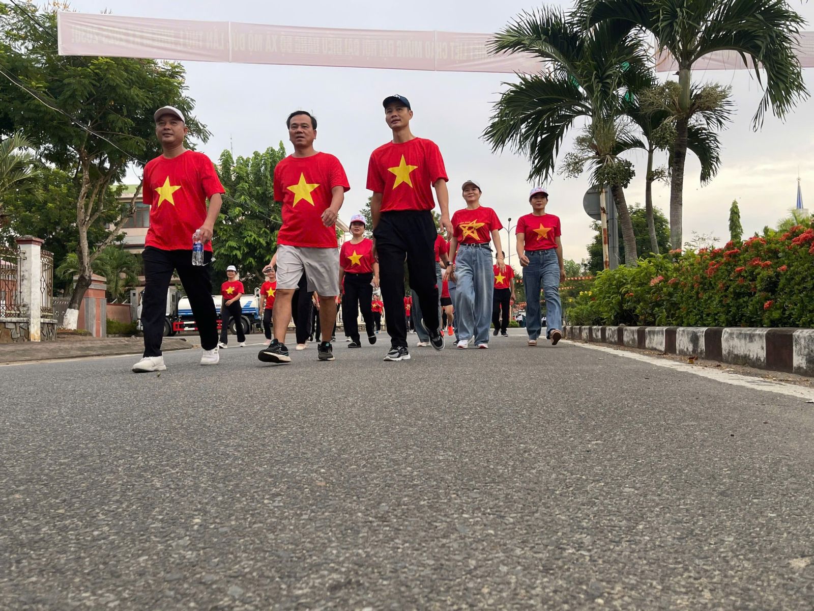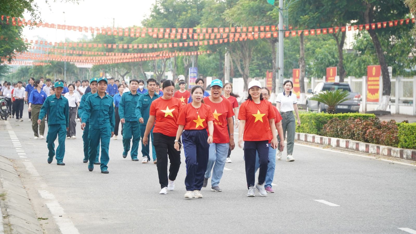Tại chương trình Cán bộ, đảng viên và Nhân dân tham gia Lễ chào cờ, hát Quốc ca và hưởng ứng đi bộ đồng hành.