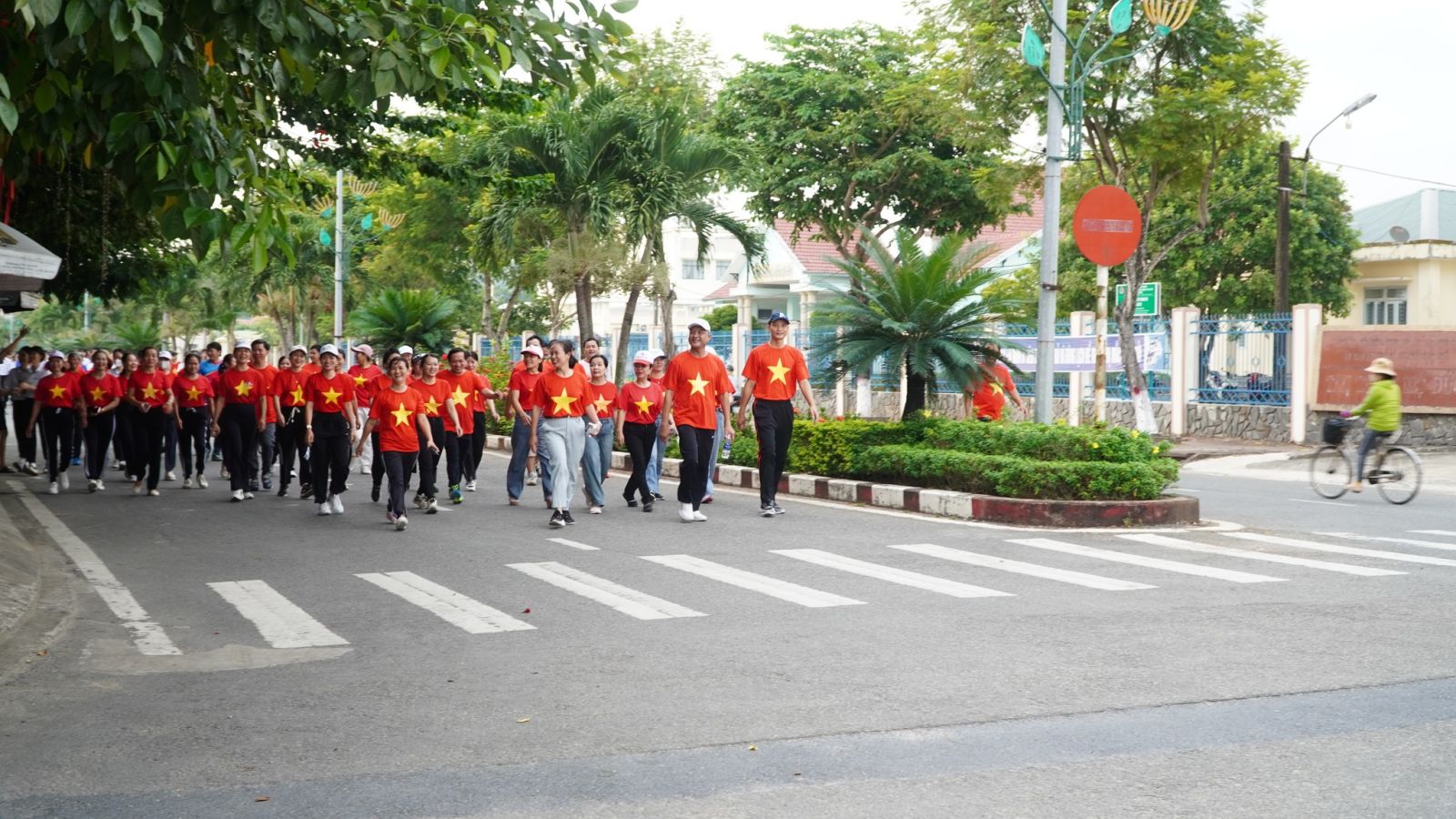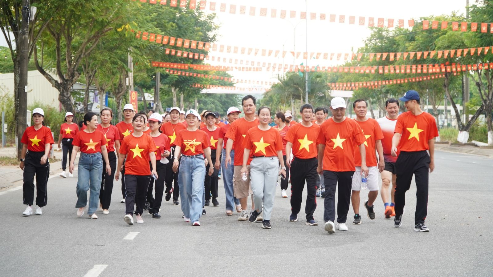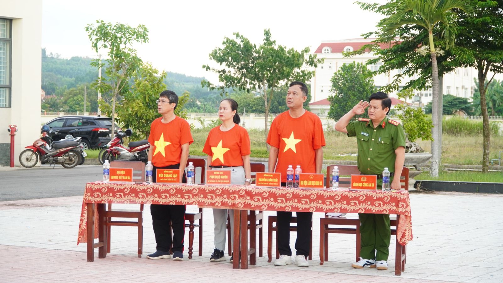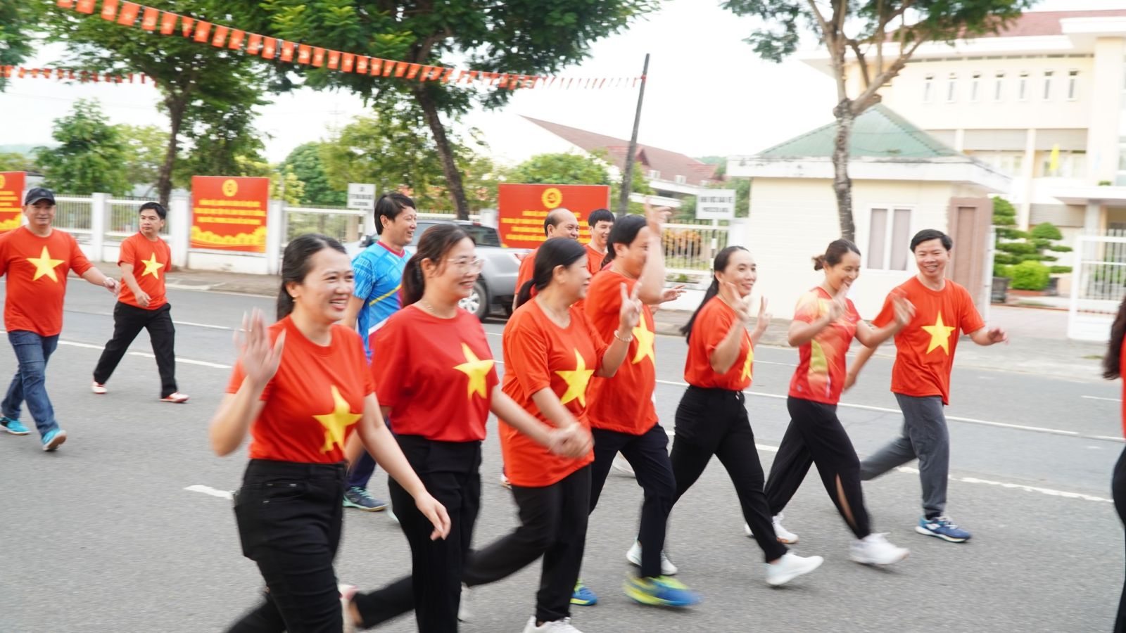 Tại chương trình Cán bộ, đảng viên và Nhân dân tham gia Lễ chào cờ, hát Quốc ca và hưởng ứng đi bộ đồng hành.