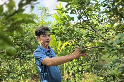 “Sau khi tham khảo nhiều nhà vườn đạt hiệu quả kinh tế, tôi thấy loại cây này phù hợp với đất đai và khí hậu ở địa phương, dễ trồng, giá cả lại ổn định nên tôi quyết định thuê đất ở gần nhà trồng chanh tứ quý cho đến nay”, anh Hậu nói.