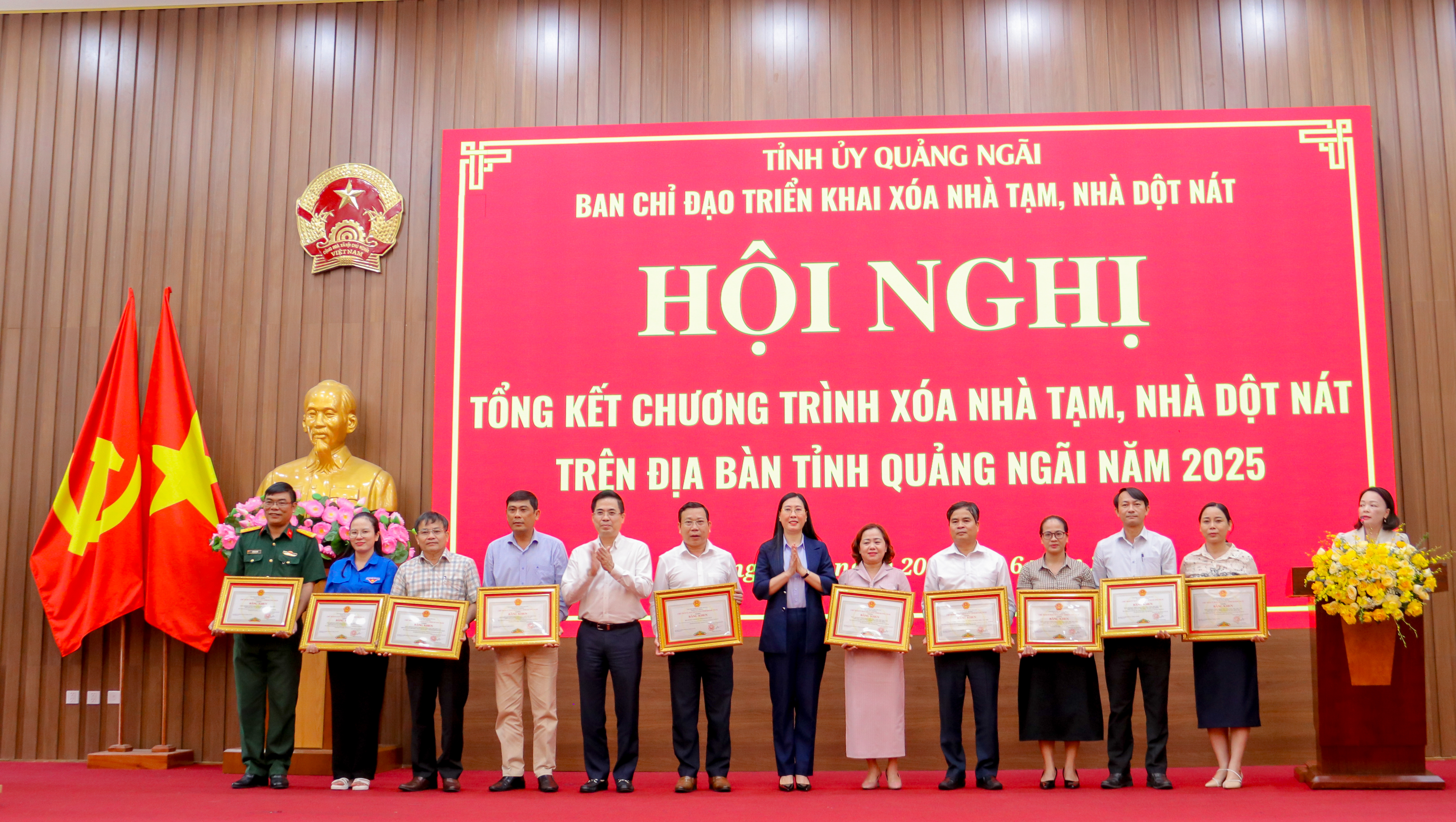 Dịp này, lãnh đạo tỉnh trao Bằng khen cho các đơn vị đã có thành tích trong thực hiện Phong trào thi đua “Chung tay xóa nhà tạm, nhà dột nát trên địa bàn tỉnh Quảng Ngãi trong năm 2025”.